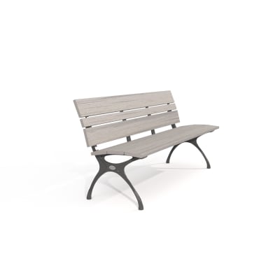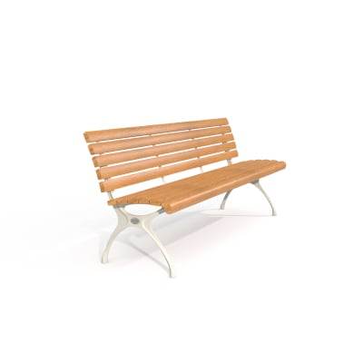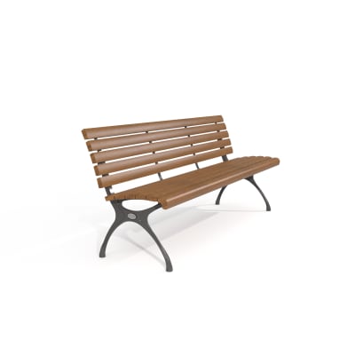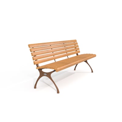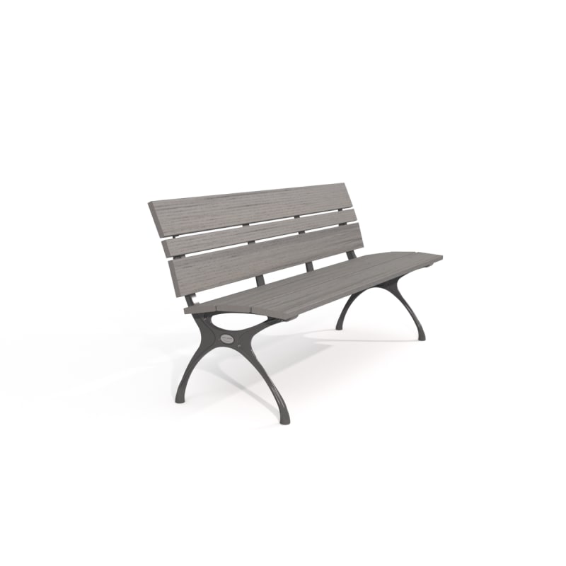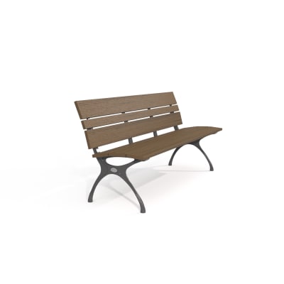 Timeless, classic seat design. Batten top in hardwood or Duraslat™ supported by an elegant cast aluminum frame in powder-coat finishes.